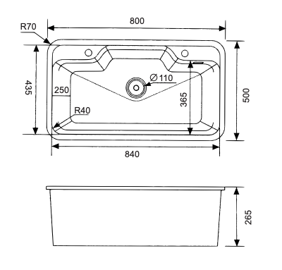 Lắp bán âm: 820 x 520 mm (R70)