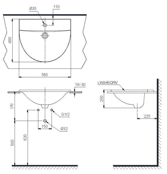 Chậu lavabo dương vành L946CRW